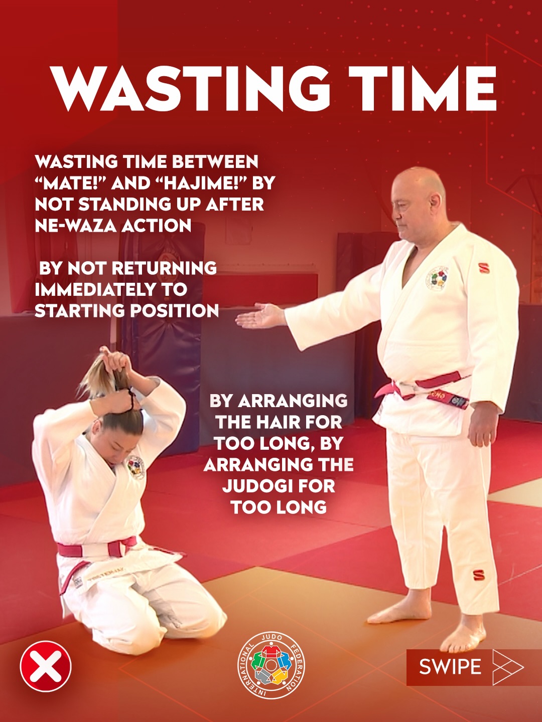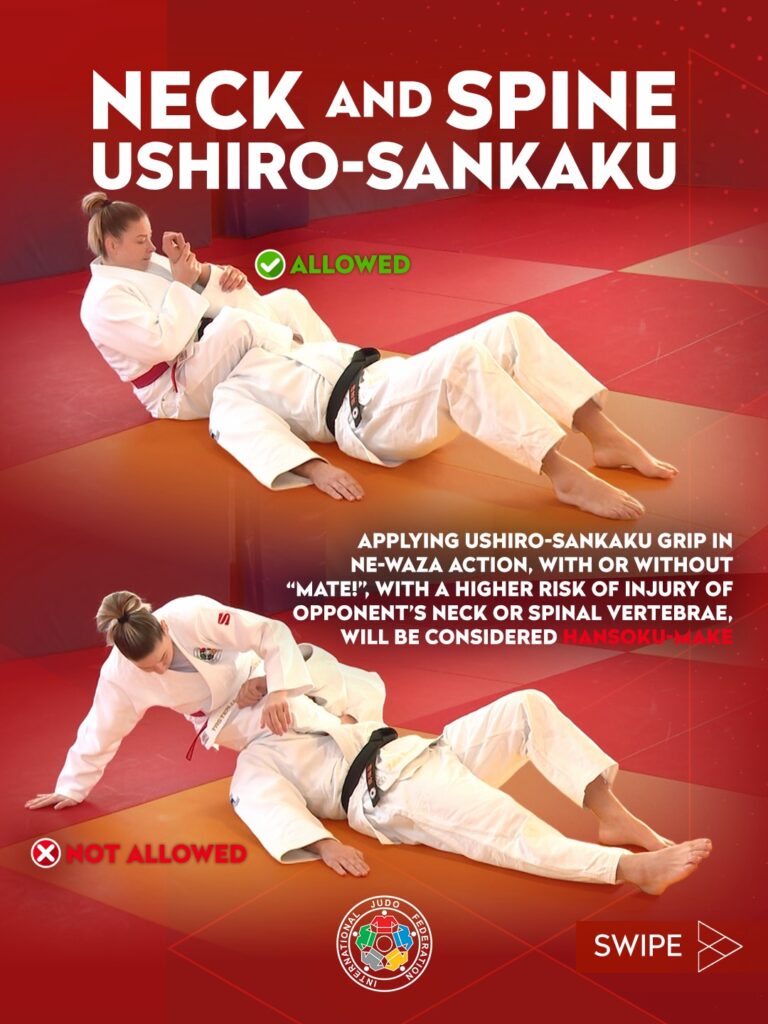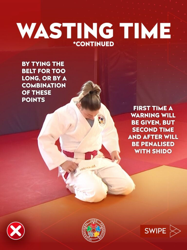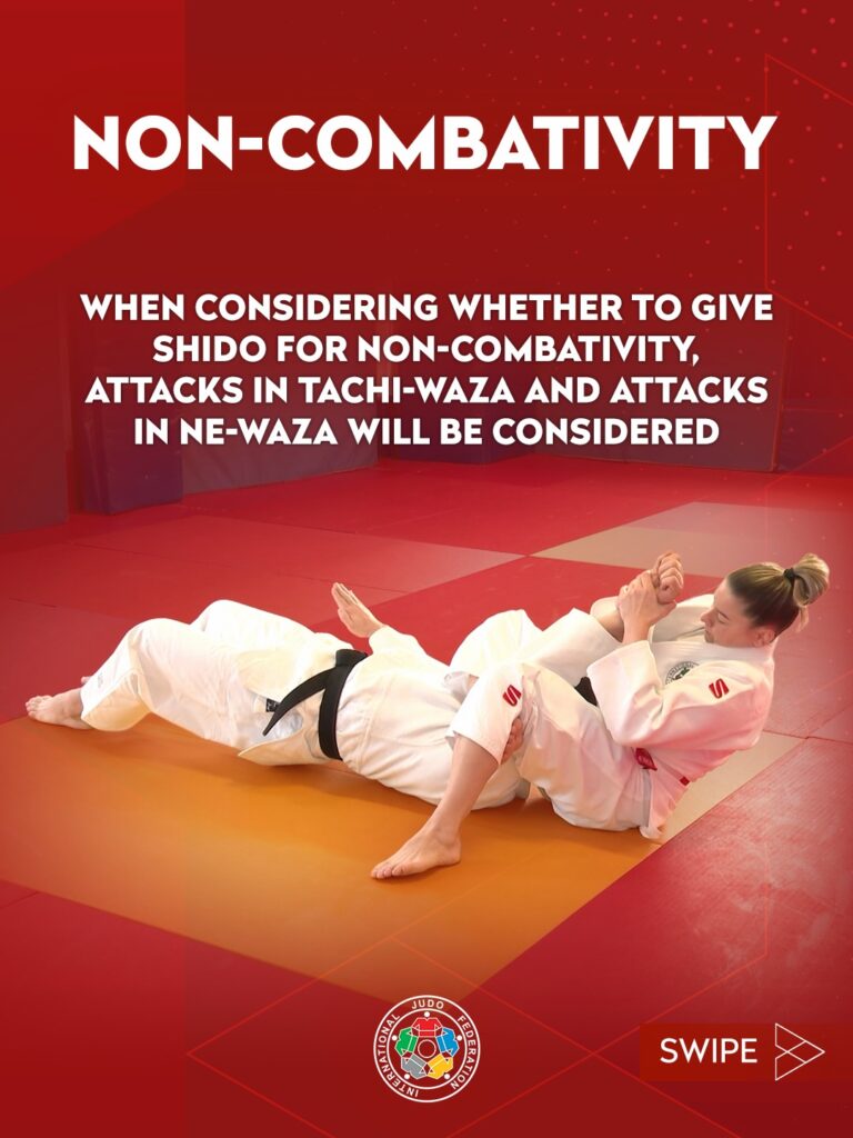 Bei der Beurteilung einer nicht-kämpferischen Haltung werden nun Angriffe im Tachi-Waza und Ne-Waza berücksichtigt. Wer aktiv angreift, zeigt Kampfbereitschaft – unabhängig davon, ob der Angriff erfolgreich ist.