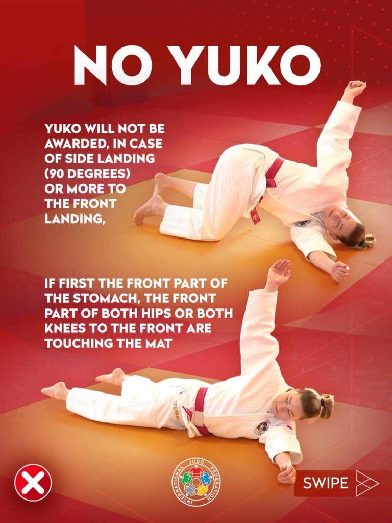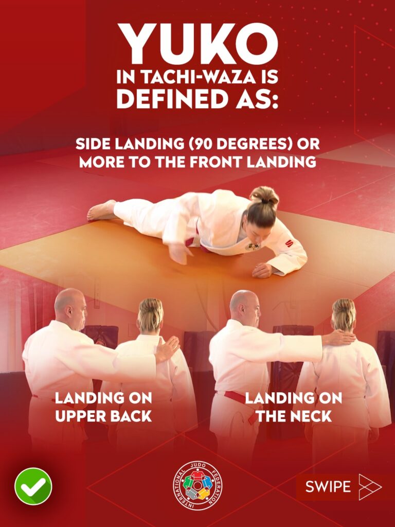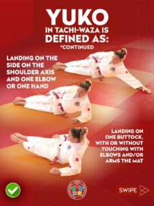 Die Wertung Yuko wurde im Stand (Tachi-Waza) genauer definiert. Ein Yuko wird vergeben bei:
